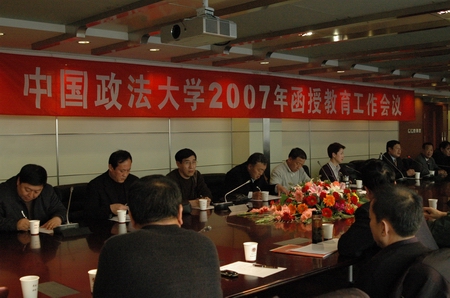 2007年12月18日下午,304永利官网登录入口在昌平校区举行2007年函授教育工作会议。出席会议的有河北省司法厅副厅长昊桐林,内蒙古自治区司法厅副厅长徐贵忠、宁夏司法警官职业学院院长罗福强以及各地司法局函授站负责人。学院各部门负责人也参加了会议。会议由学院常务副院长兼分党委书记吴飚主持。