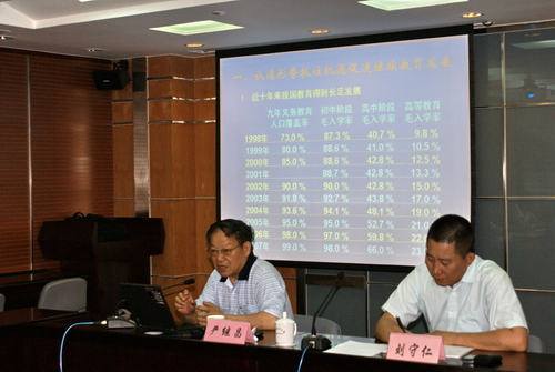 在两个多小时的报告中,严继昌教授从认清形势,抓住机遇,促进继续教育事业的发展、继续教育在研究型大学中的地位作用、以人为本的体制改革与培养模式创新这三个问题的阐释中,同与会同志进行了交流。严继昌教授通过对我国十几年来教育工作情况的系统回顾,总结出我国高等教育的发展特点,分析了成人学历教育呈缓慢下滑趋势的原因,并详细介绍了清华大学继续教育的办学模式、管理体制及运行机制。如成立继续教育管理处、实现资源共享与优势互补,创新市场开拓途径、不断加强教育培训机构的专业化建设等,以使继续教育适应培训市场的需要,实现又好又快地向前发展。