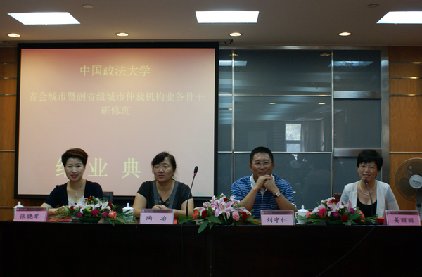 8月26日上午,由永利官网主办的首届中国“省会城市暨副省级城市仲裁机构业务骨干研修班”在昌平校区国际交流中心举行了结业典礼。特邀嘉宾贵阳仲裁委员会副主任陶冶,与304永利官网登录入口院长刘守仁、副院长张晓琴、政府与企业管理教育中心主任姜丽丽,以及全体研修班学员共同参加了结业典礼。典礼由姜丽丽主持。