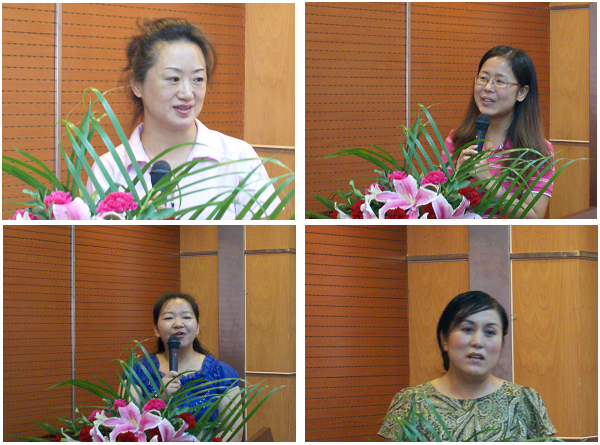 在接下来的学习成果交流环节,学员们都真诚地表达了对法大学习的留恋与感谢。研修班学习委员、来自大连仲裁委的业务处长吴少云首先发言,她如数家珍般地表达了对研修班每一门课程和每个教学环节的内心感受,认为此次研修班教学设计科学、组织精心,老师们特别敬业,各方面服务都很周到,学员们求知若渴、真情切磋,真正感受到法大的老师都是“亲老师”!来自惠州仲裁委的业务科长黄新明表示,通过这次学习,他对仲裁行业、仲裁事业的发展都有了新的认识和体会,变得不再困惑、不再迷茫了。他深切感受到,仲裁秘书在仲裁工作中大有作为、而且所需要的业务素养内涵非常丰富。他表示,这次研修班将成为点燃提升我国仲裁行业业务水平的“火种”,他自己和全体学员都会将研修所得与仲裁工作相结合,将研修班的“火种”传播出去,为仲裁事业发展贡献自己的力量!来自郑州仲裁委的业务处长张灵芝特别激动,她不仅表达了对各位老师精彩授课内容的深切体会,还特别感谢研修班老师对自己的人生定位、换位思考方面的帮助,全体学员也对灵芝同学的肺腑之言报以热烈掌声。来自贵阳仲裁委的王静在深情表达对法大和研修班老师感谢之余,特别欢迎大家到“爽爽贵阳”去交流访问,并祝福仲裁界的同仁都能像黄进校长致辞所说——“做一个幸福的人”。来自武汉仲裁委的熊颖和杨勰勰均是工作了七八年的优秀仲裁秘书,她们表示,法大专门为仲裁一线的工作人员举办的研修班非常有针对性,不仅教学安排紧凑有序、内容丰富、重点突出,而且形式多样、让人耳目一新、视野顿开,教学管理方面创造了特别有凝聚力的班级环境,为仲裁同行之间的交流借鉴提供了机会,无论是仲裁业务还是整体素质各方面收获都很大。来自成都仲裁委的资深秘书张威表示,他从事仲裁工作十年,办案逾千件,参加这次研修才意识到,虽然之前仲裁工作技能和经验不断积累,但对仲裁理念缺乏深入思考。这次法大学习虽然短暂,却激发了之后长期学习、主动思考的内心动力。刚刚参加工作一年多的两位仲裁界“新生代”——大连仲裁委的张枢和武汉仲裁委的尹秀莉也与大家分享了自己的感受。她们真诚表示,感谢领导支持和法大老师,让她们进入仲裁行业之初就有了集中汲取前辈经验、系统学习仲裁业务的良机。尹秀丽用“走精英之路、展人格魅力,走高端之路、创仲裁品牌,走职业之路、谋长期规划”总结了自己的研修体会;张枢则梳理了自己通过学习对仲裁秘书工作的新感悟和发展的信心,她借用黄进校长所倡导的“照一隅”精神,表示自己将立足仲裁秘书岗位,无论自己是“阳光”还是“烛光”,都能够在平凡的岗位上做出自己应有的贡献,照亮仲裁事业的“一隅”!