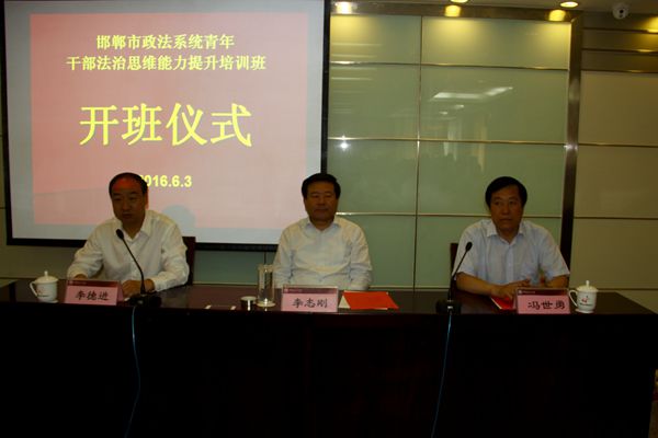 6月3日上午,由304永利官网登录入口和邯郸市政法委合作举办的邯郸市政法系统青年干部法治思维能力专题培训班在永利官网昌平校区举行开班仪式。中共邯郸市委常委、组织部长李志刚,304永利官网登录入口副校长冯世勇,中共邯郸市委常委、政法委书记、群工部部长李德进出席开班仪式,开班仪式由李德进主持。