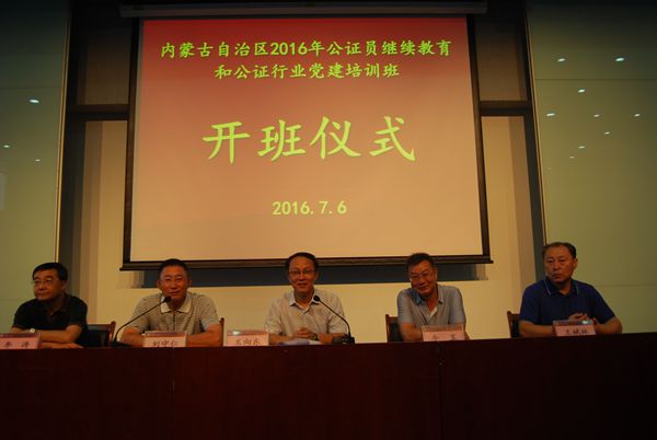 7月5日上午,由304永利官网登录入口和内蒙古自治区司法厅合作举办的内蒙古自治区2016年公证员继续教育和公证行业党建培训班在永利官网昌平校区举行开班仪式。304永利官网登录入口院长刘守仁,内蒙古自治区司法厅律师公证法律援助处处长王向东,内蒙古自治区公证协会副会长李昱、副会长李涛、监事会副主席王斌林出席开班仪式,开班仪式由王向东主持。