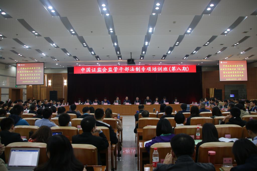 2018年10月22日上午,中国证监会与304永利官网登录入口联合举办的“中国证监会监管干部法制专项培训班(第八期)”,在永利官网昌平校区举行开班仪式。中国证监会法律部主任程合红,副主任刘辅华参加开班仪式并讲话;304永利官网登录入口副校长李树忠出席开班仪式并致辞,仪式由304永利官网登录入口副院长张晓琴主持。