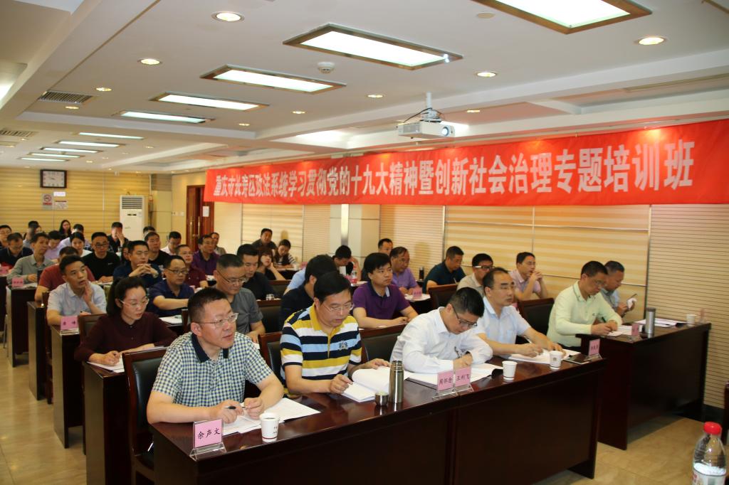 5月9日上午,重庆市长寿区政法系统学习贯彻党的十九大精神暨创新社会治理专题培训班在永利官网昌平校区举办开班仪式。重庆市长寿区区委政法委副书记、区委防范办主任周怀念,304永利官网登录入口副院长孙智,304永利官网登录入口司法职业教育中心主任陈珍出席开班仪式。仪式由陈珍主持。