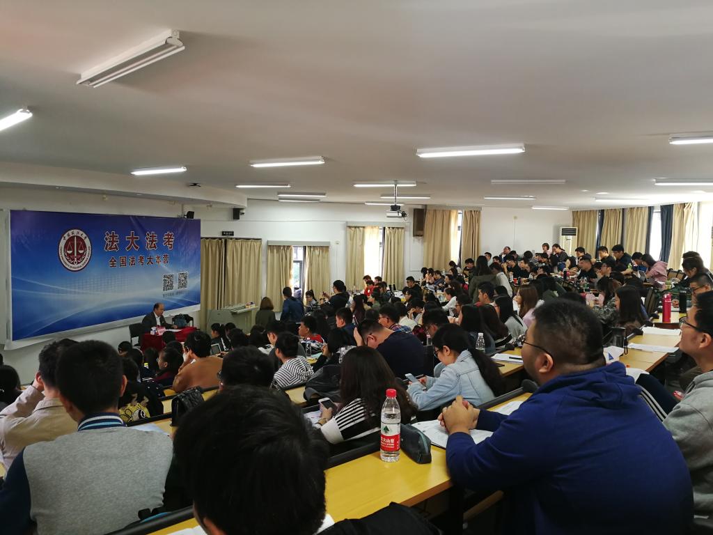 宋乃龙致辞。首先,他代表司法考试中心(学院)向全体同学表示热烈欢迎,对参与授课的老师表示由衷的感谢。随后,他简要的介绍了本次课程开设的意义并对同学们提出了几点要求。他说,2018年是国家建立实施统一法律职业考试的第一年,新的考试形式对考生运用法律思维解决实践问题提出了更高的要求。为了让同学们更快的适应法考新变化新要求,不断提升考生自主分析问题解决问题的能力,顺利通过法考,并为提高就业竞争力打下坚实基础,司法考试中心(学院)集中优势师资特针对校内学生开设本课程。他希望全体同学能够珍惜机会认真听课,并鼓励同学们积极地与学科资深教授同时也是法考名师进行交流,充分的汲取知识提升自我,并祝愿同学们能够在一周后的首次法考主观题考试中取得优异成绩。最后,他向学生们郑重的介绍了第一次课程民事诉讼法科目的授课老师、民商法学院副院长杨秀清教授。在一片热烈的掌声结束后,校内生主观题冲刺点睛班授课正式开始。