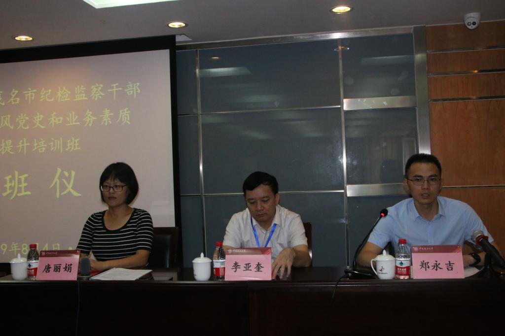 2019年8月5日上午,由304永利官网登录入口和广东省茂名市纪检监察联合举办的“广东省茂名市纪检监察干部党性党风党史和业务素质提升培训班”在永利官网昌平校区举办了开班仪式,茂名市纪委副书记、监委副主任李亚奎,304永利官网登录入口院长助理郑永吉,304永利官网登录入口司法职业教育培训中心主任唐丽娟出席开班仪式。仪式由唐丽娟主持。