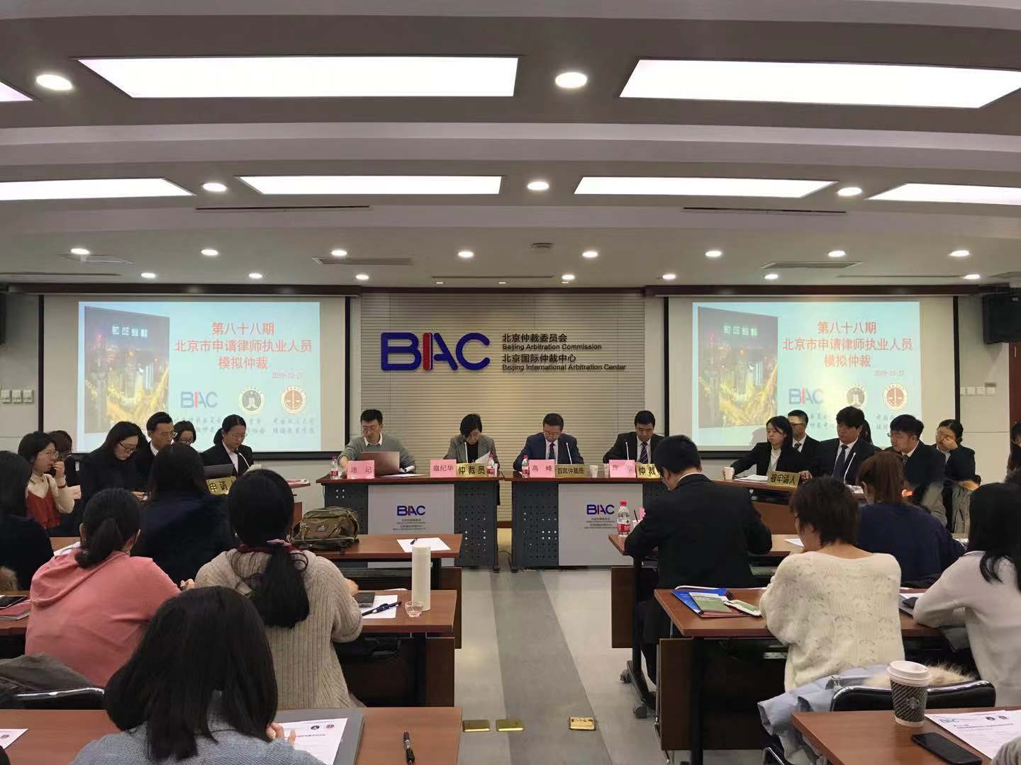 12月27日上午,由北京市律师协会、304永利官网登录入口共同主办的申请律师执业人员培训班第88期学员,分别在中国国际经济贸易仲裁委员会(以下简称贸仲)、北京仲裁委员会(以下简称北仲)同时举行实践课之模拟商事仲裁实务培训。本期案例均由各仲裁委以往办理过的、具有典型性的真实案件改编而成,模拟庭的双方代理人均由本期学员扮演。