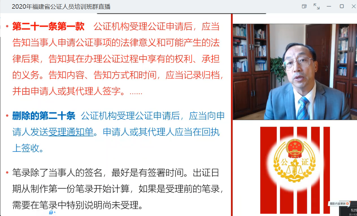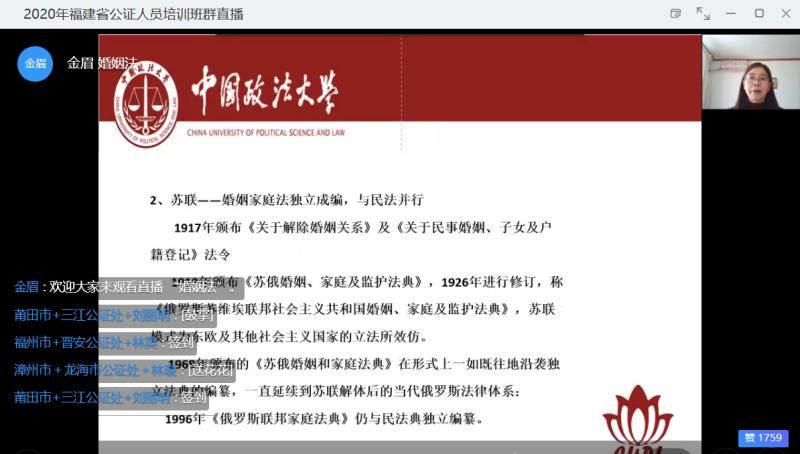 11月10日至12日,福建省公证协会和304永利官网登录入口联合举办的“2020年福建省公证人员培训班”顺利举行。本次培训采用全程线上直播授课形式,来自福建省600多名公证员参加了本次培训。