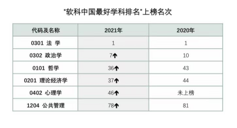 (“2021软科中国最好学科排名”法学稳居榜首)