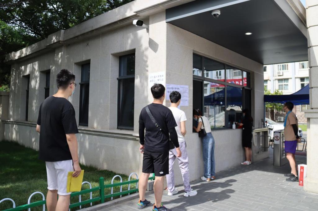 正值酷暑,当日共有近500位2020级专升本毕业生和2018级高起本准毕业生到场领取毕业材料。为贯彻落实疫情防控要求同时减少学生排队、提高领取效率,学院提前按学号划分了领取时间段,整个领取过程采取“一站式”原则,工作人员科学分工,毕业材料分两个窗口同时发放,确保每位同学在1分钟之内便可领取到所有毕业材料。工作人员准备了手部消毒液,全程佩戴口罩,并安排专人维持秩序,提醒各位同学保持一米间距。整个工作历时近三小时,现场有条不紊,秩序井然。