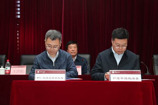 仪式上,学校学生处处长王洪松、法律硕士学院党委书记韩文生分别与科左中旗委副书记、政法委书记于勇签署学生实习实践基地和教学实践研究基地协议。科左中旗副旗长、公安局局长刘淼、人民法院院长纪明、人民检察院检察长王江、司法局局长韩宝玉,学校学生处副处长、科左中旗副旗长卜路军、国内合作处副处长喻清泉参加仪式。