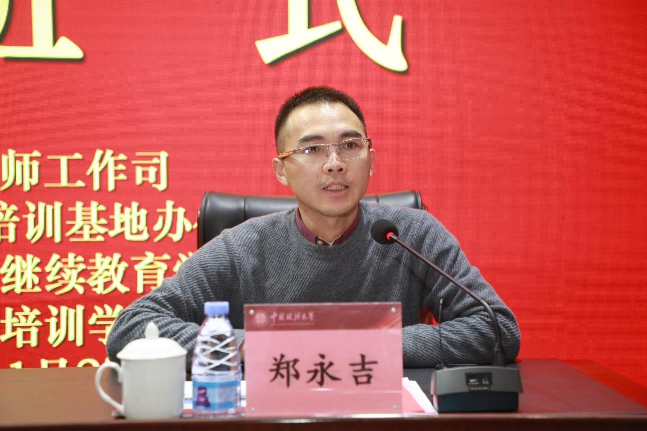 郑永吉致欢迎词。他表示学校将全力做好各位学员在校研修期间各项教育教学和服务保障工作,希望全体学员通过培训学习,全面提升国家安全教育意识,提高国家安全教育教学本领。