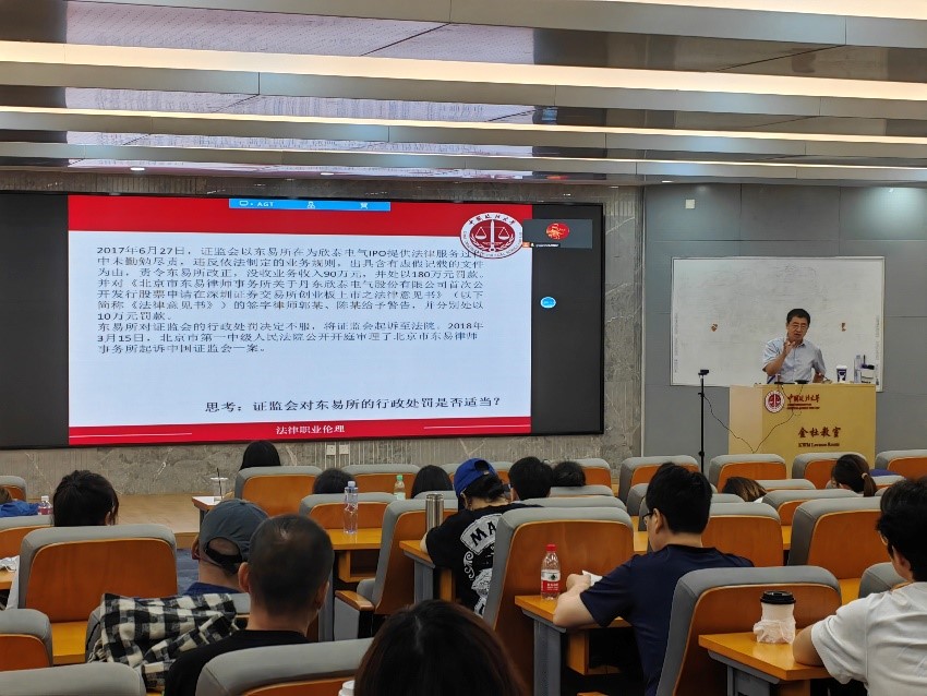 许身健教授从法律职业伦理的基本内涵开始,概括了不同的法律从业人员需要具备的职业使命,重申了法律职业伦理与法律职业道德之间的联系与区别,强调了法律职业伦理的重要性以及法律信仰的价值。他还分享了如何提升法律职业伦理水平的方法,并通过丰富案例进行深入剖析。课程结束后,同学们纷纷表示受益匪浅。