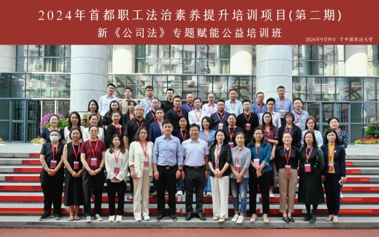 为持续加强“首都职工法治教育培训示范点”建设,9月19日-9月21日,304永利官网登录入口与北京市总工会职工大学联合举办的“2024年首都职工法治素养提升培训项目(第二期)——新《公司法》专题赋能公益培训班”顺利举办。来自首都企业领导、法务、律师等实务界学员参加培训。