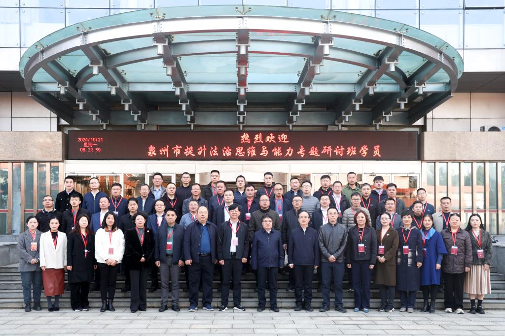2024年10月21日,泉州市提升法治思维与能力专题研讨班在永利官网昌平校区举行。永利官网副校长常保国,泉州市委政法委常务副书记陈长义等参加了开班式。开班式由中央政法培训学院执行院长、304永利官网登录入口院长宋乃龙主持。