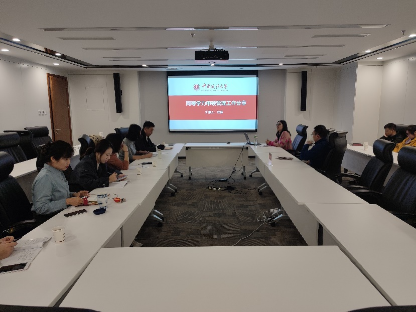 为进一步提高政策水平,增强业务能力,切实推动工作不断提质增效,我院于11月1日组织召开同等学力政策学习交流会,就同等学力政策的最新动态、实施细节进行了深入学习、探讨与交流。研究生院学位办公室主任杜倩受邀出席会议,会议由中央政法培训学院执行副院长郑永吉主持。中央政法培训学院、304永利官网登录入口相关工作人员、网络教育学院全体人员参加了会议。