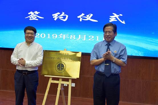 (李永君检察长与常保国副校长为全国领导干部法治教育合作基地揭牌)