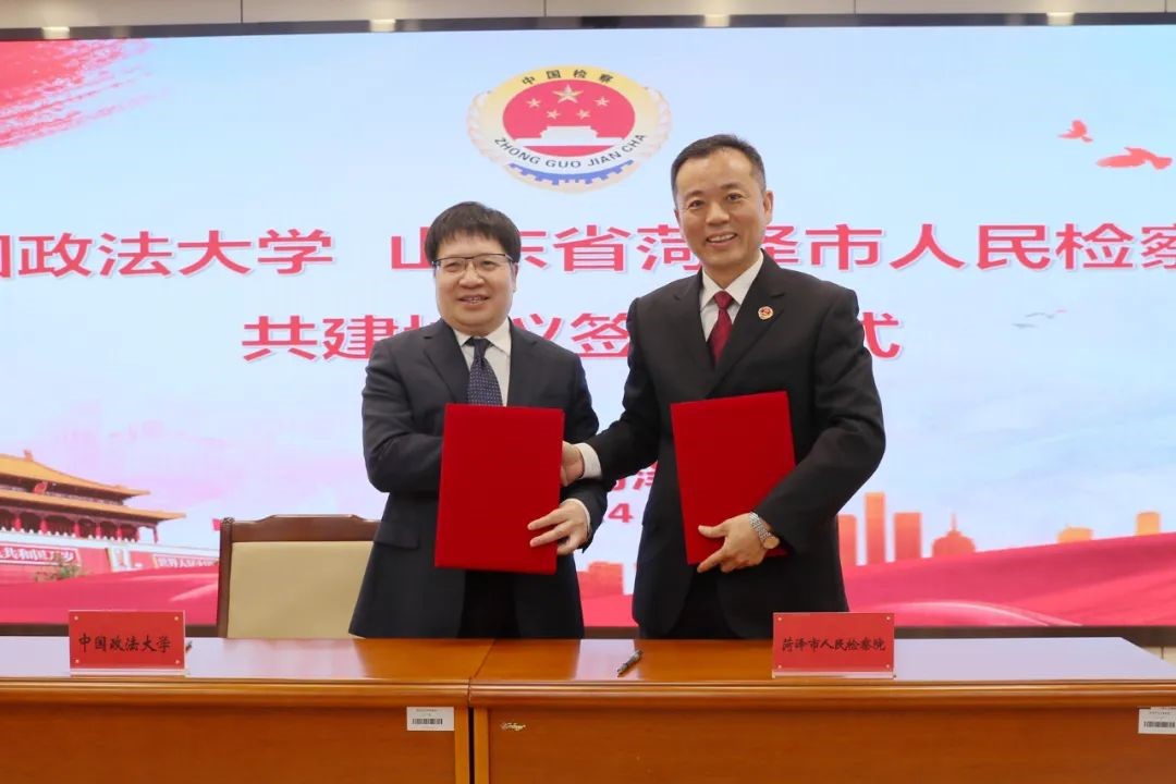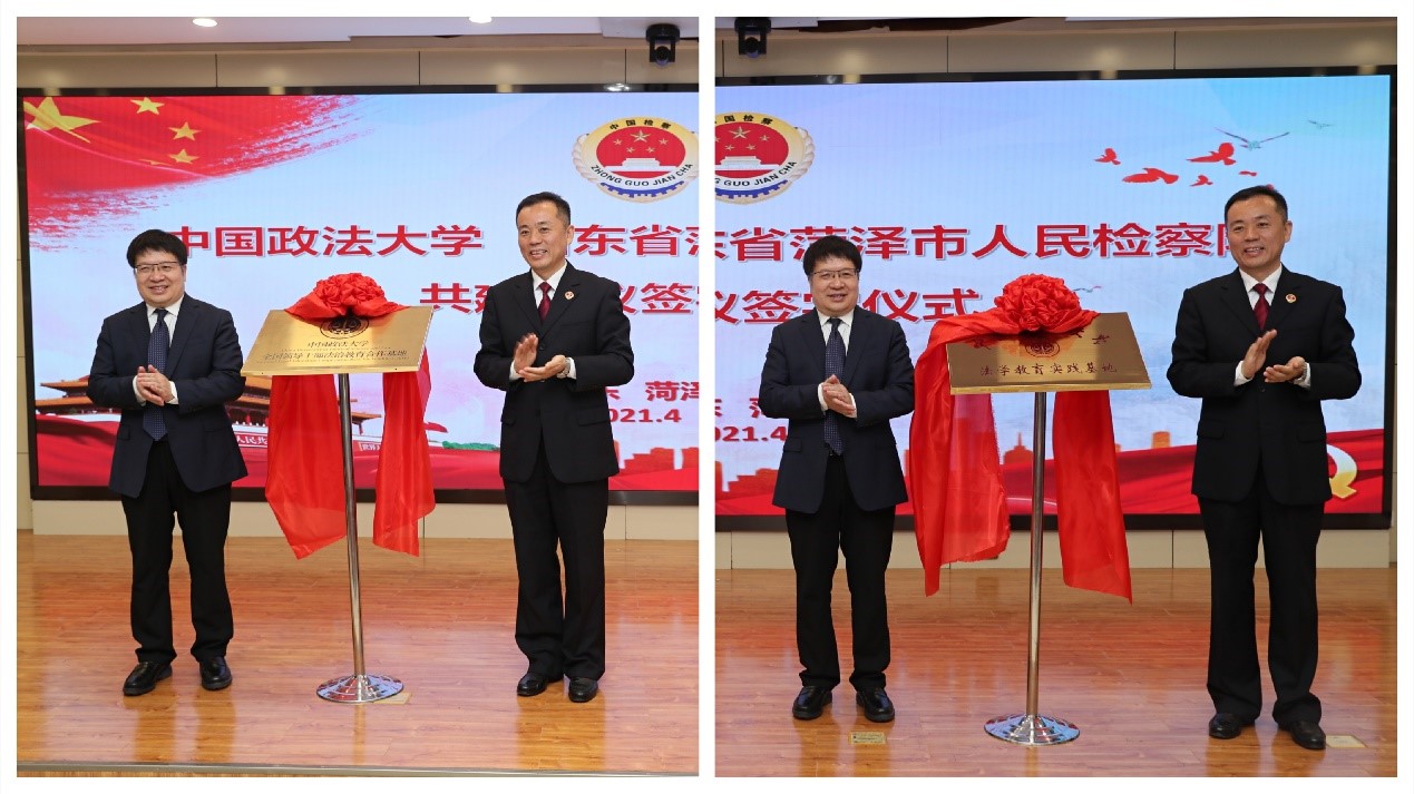 菏泽市检察院副检察长许澎涛、任孔全,政治部主任赵东,304永利官网登录入口教务处、国内合作处、304永利官网登录入口相关负责人参加了签字和揭牌仪式。