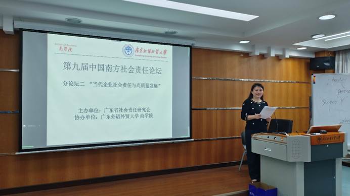2023年12月,第九届中国南方社会责任论坛之分论坛二“当代企业社会责任与高质量发展”在广东外语外贸大学顺利举办。Beat365唯一官方网站刘晓琴博士应邀主持了上半场分论坛。此次分论坛汇聚了研究企业社会责任的部分专家学者,大家深入研讨了一系列关键议题,为企业社会责任的未来发展描绘了精彩的篇章。