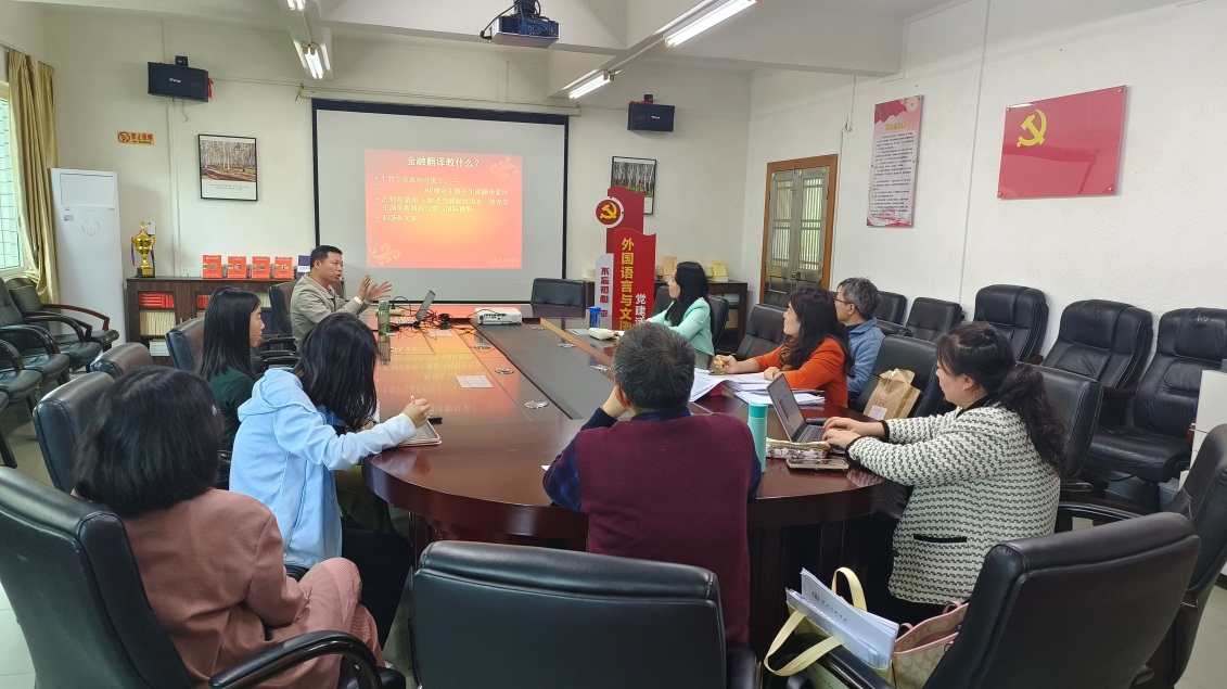 在学术沙龙中,汤新煌老师就目前数字化背景下,财经金融翻译的教学改革提出了新思路,分享了他在教学实践中探索的新方法和新理念,引发了与会师生的广泛讨论与思考。刘晓琴博士就疫情期间中国食品企业的诚信评价体系研究发表了精彩演讲,展示了自己与团队成员就该话题进行的深入探讨,为与会者提供了一个新鲜的视角和思路。杨贵章博士则运用“语境参数理论”探讨了学生翻译实践和机器翻译中出现的问题,并在此基础上提出了零视域、单维视域等新概念。杨博士的研究在某种程度上进一步完善了语境参数理论,同时对财经金融翻译实践提供了有益的启示。