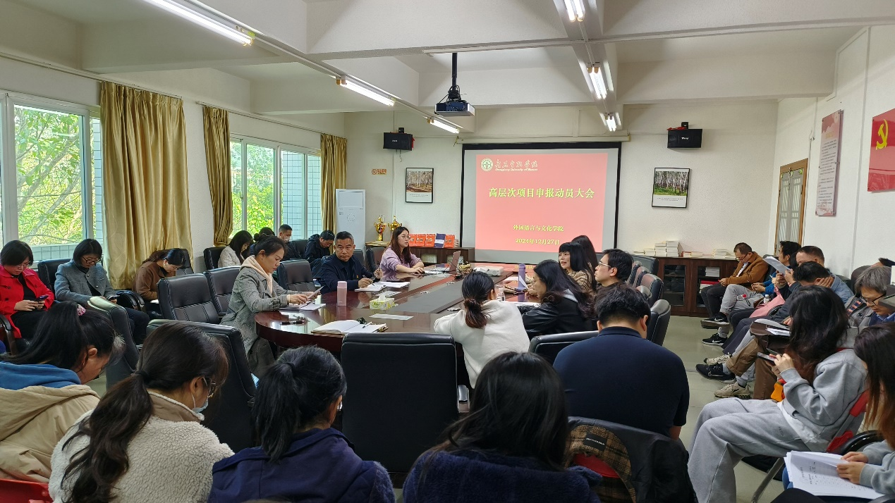 随后,涂院长对高层次项目申报工作进行了全面动员。她强调,高层次项目申报对于提升学院科研水平、推动学科发展具有重要意义。科研工作对学院的翻译硕士学位点的验收工作和未来进一步申报新的硕博学位点提供重要支撑,她鼓励全院教师积极参与项目申报,勇于挑战高难度课题,不断提升自身的科研能力和水平。
