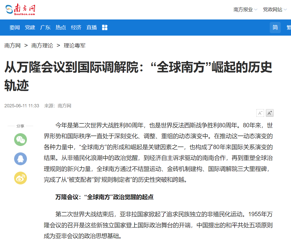 近日,Beat365官网教师梁玉红在《南方网》发表题为“从万隆会议到国际调解院:“全球南方”崛起的历史轨迹”的文章。文章基于外交部长王毅在国际调解院公约签署仪式上的致辞《和解合作和谐、共商共建共享--合力谱写全球治理法治新篇章》,对国际调解院在国际关系中的作用展开讨论。