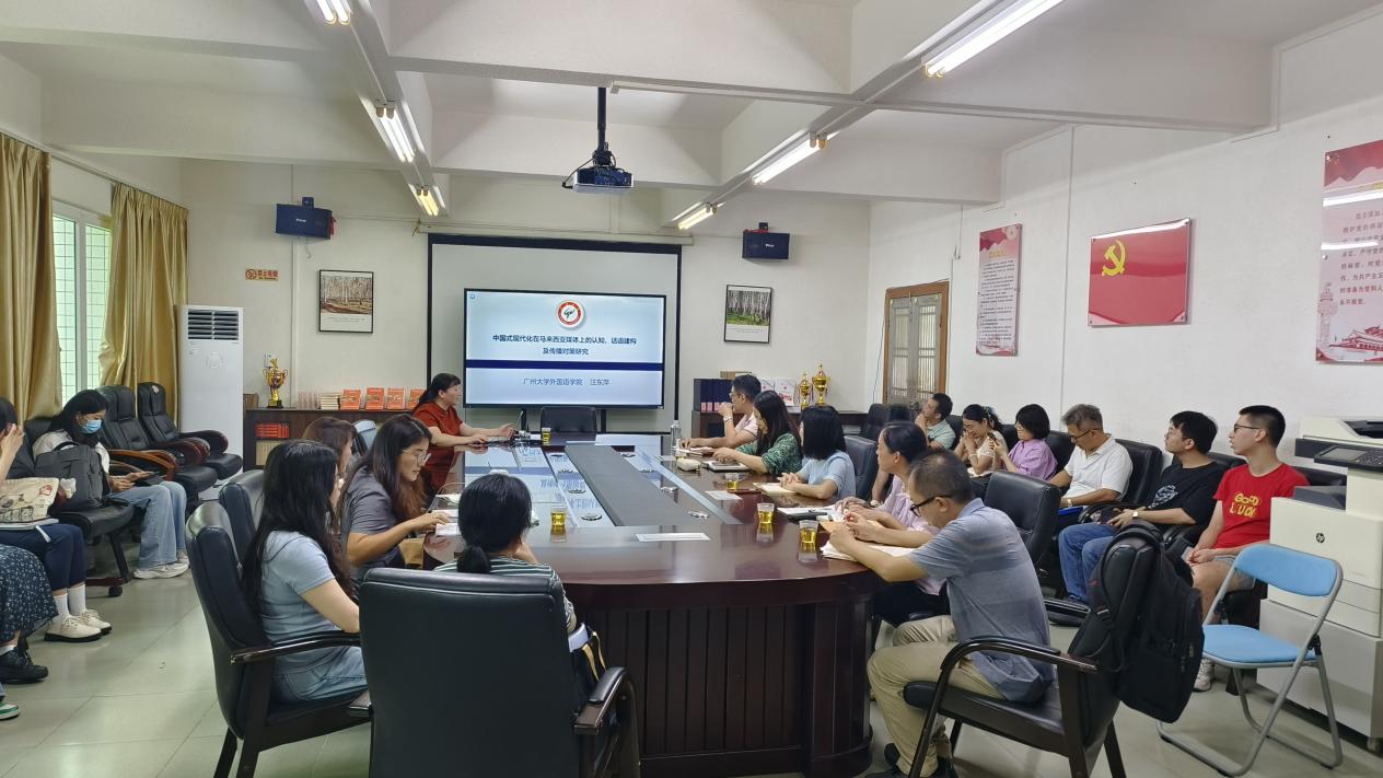 9月28日下午,广金外语论坛第73期在Beat365唯一官方网站会议室举行。广州大学汪东萍教授应邀作“马来西亚媒体视域下中国式现代化的话语建构”专题讲座,Beat365唯一官方网站科研骨干教师和翻译硕士研究生到场聆听。