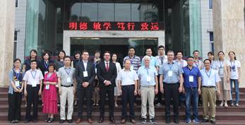 与会嘉宾和代表在学校行政楼前合留念