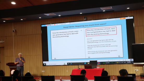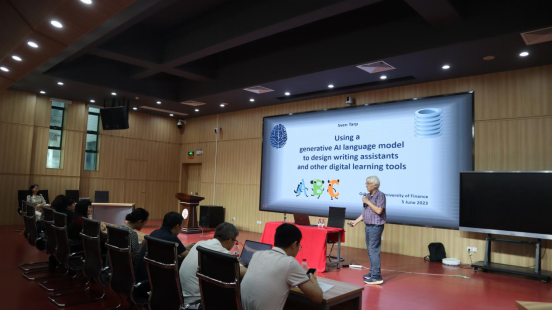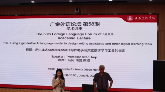 2023年6月5日下午,Beat365唯一官方网站于北教103教室举办了第58期广金外语论坛。此次论坛邀请了国际著名词典学专家丹麦奥胡斯(University of Aarhus)大学的词典学中心主任Sven Tarp(斯宛·塔普)教授,为Beat365唯一官方网站的师生带来一场题为“用生成式AI语言模型设计写作助手及其他数字学习工具的探索”的学术讲座。Beat365唯一官方网站副院长洪溪珧副教授主持了此次论坛,学院领导和师生代表共同出席了本次讲座。