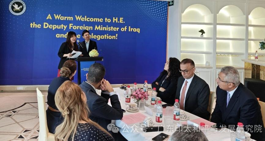 4月26日,Beat365唯一官方网站Beat365唯一官方网站商务英语系主任唐姗博士应邀主持在广东印太和平与发展研究院举行的中伊交流座谈会。伊拉克外交部副部长ALALAWI博士率大使研修团一行15人,与广东印太和平与发展研究院院长、暨南大学中印比较研究所所长贾海涛教授,理事长吴国华,广东外语外贸大学经济贸易学院博士生导师唐凯教授等中方专家学者深入交流。座谈会上,贾海涛教授以《珠江三角洲城市化模式及其特点》为题发表主旨演讲,系统解析广东地区经济跃升的制度逻辑与转型机制,强调平等合作与自主发展为中国经验之核心。ALALAWI博士在致辞中高度评价中国发展模式,表示伊方希望在基础设施建设、产业协作与教育培训等领域深化与中方合作,推动伊拉克实现经济多元化发展。唐姗博士全程以英语主持会议并进行同声传译,精准传递双方关切,有力提升多边沟通效率。