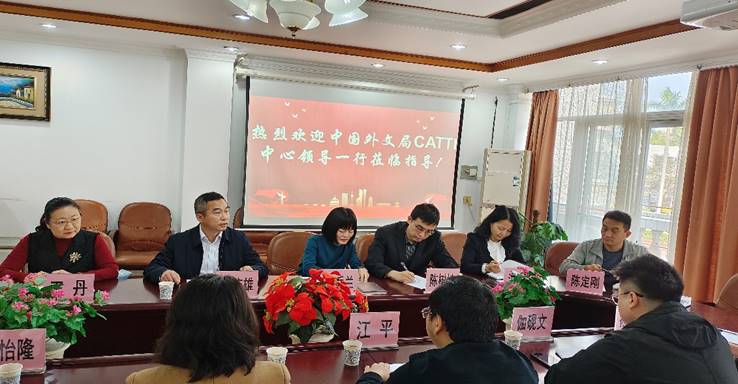 2023年2月24日星期五上午,中国外文局CATTI中心领导班子,中国外文局全国翻译专业资格(水平)考试项目中心主任、全国翻译资格考试办公室秘书长江平,中国外文局全国翻译专业资格(水平)考试项目中心副主任冯婧一,中国外文局全国翻译专业资格(水平)考试项目中心对外合作部主任伽砚文;中国外文局全国翻译专业资格(水平)考试项目中心海外考试部主任;赵怡隆中国外文局全国翻译专业资格(水平)考试项目中心秘书长助理孙茄以及复旦大学出版社广东区域经理黄见一行6人莅临Beat365唯一官方网站Beat365唯一官方网站指导工作。