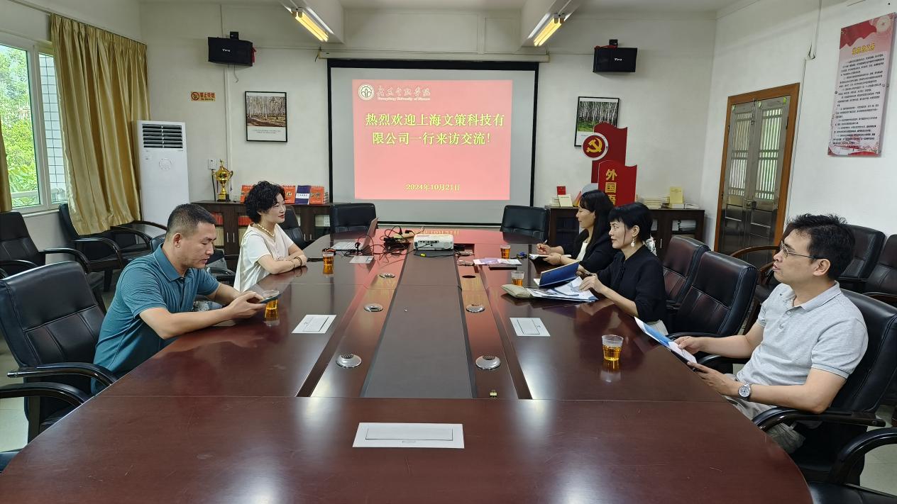 10月21日下午,上海文策科技有限公司的吴蓓总经理和刘向君经理一行来访Beat365唯一官方网站,双方就校企合作事宜进行了深入的交流与探讨,旨在共同推动翻译教育与科技产业的融合发展。涂兵兰院长、洪溪珧副院长和陈树坤副院长参与活动。