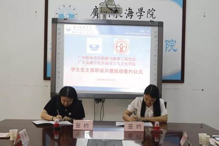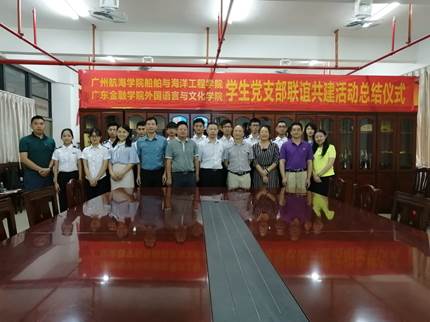广金广航联谊党务共建一年活动期满,2019年5月22日在广州航海学院举行总结仪式。会上,双方学生党支部书记分别以“支部共建1+1,共同发展>2”和“党建引领聚合力,携手共建育英才”为主题汇报了2018年双方党建共建工作情况及接下来的共建工作展望。