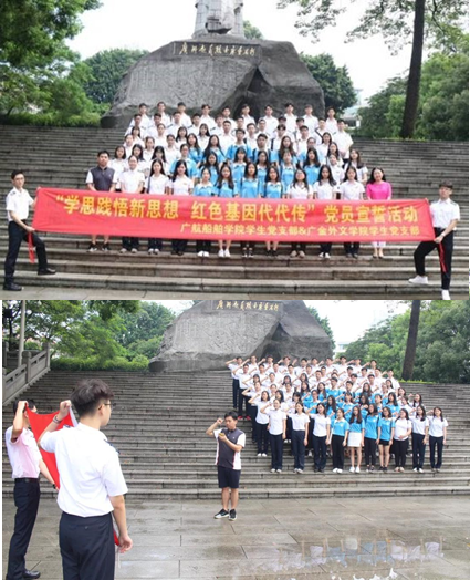 为了深入学习贯彻习近平新时代中国特色社会主义思想和党的十九大精神,在中国共产党成立97周年来临之际,我校Beat365唯一官方网站学生党支部同广航船舶与海洋工程学院学生党支部于6月24日上午在广州起义烈士陵园举行“学思践悟新思想,红色基因代代传”预备党员宣誓仪式。