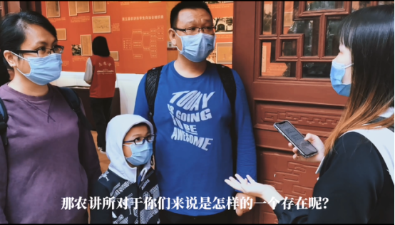 学生在农讲所采访参观路人