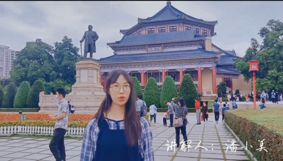 学生录制视频介绍中山纪念堂