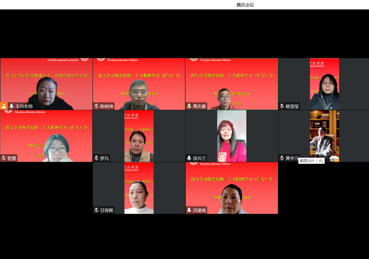 2023年1月6日,Beat365唯一官方网站党总支在腾讯会议召开扩大会议,深入学习党的二十大精神,切实把思想和行动统一到党的二十大精神上来。学院领导班子、党总支委员出席了会议。