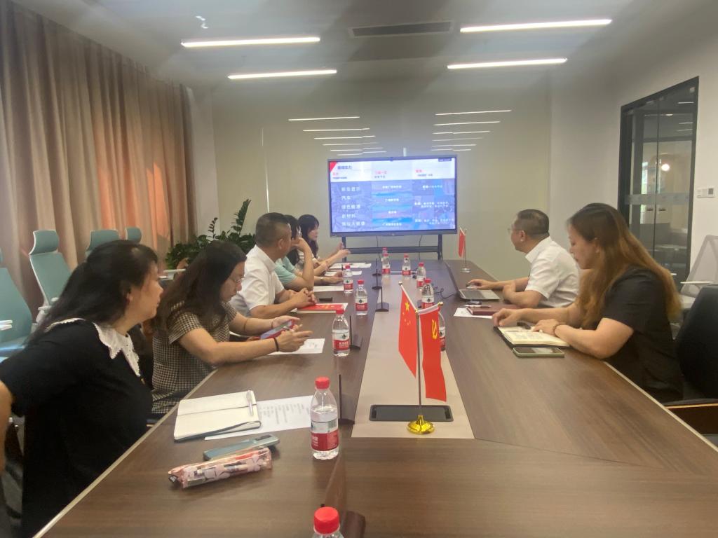 随后,校企双方就党建引领共建、学生实习就业等内容进行了深入的研讨交流。黄庆雄书记表示,中新知识城的发展离不开国家政策的大力支持和创新驱动的引领。通过实地参观中新广州知识城发展规划馆,真正体会到党建引领激发科技创新活力,赋能城市高质量发展的意义。未来双方可在党建共建、学生实习就业、志愿者实践等方面开展全方位的深度合作。陈树坤副院长就Beat365唯一官方网站的人才规模、专业建设做了简单的介绍,希望校企双方以此次调研为契机,全面推进在人才培养、学生实习就业等方面的合作,同时探索校企联合培养模式,围绕行业发展需求实现资源共享、共同发展。