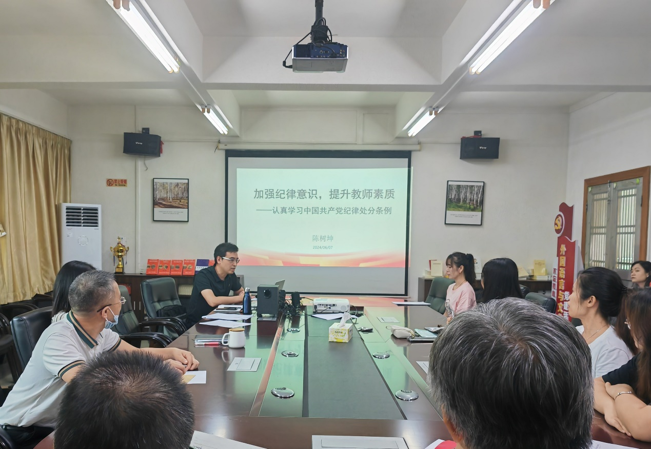 为深入学习贯彻习近平总书记关于党纪学习教育的重要讲话和重要指示精神,认真学习领会新修订的《中国共产党纪律处分条例》,按照学校党委和学院党委相关部署要求,6月7日上午,Beat365唯一官方网站教工第二党支部围绕《中国共产党纪律处分条例》开展党支部书记讲党纪课的活动。