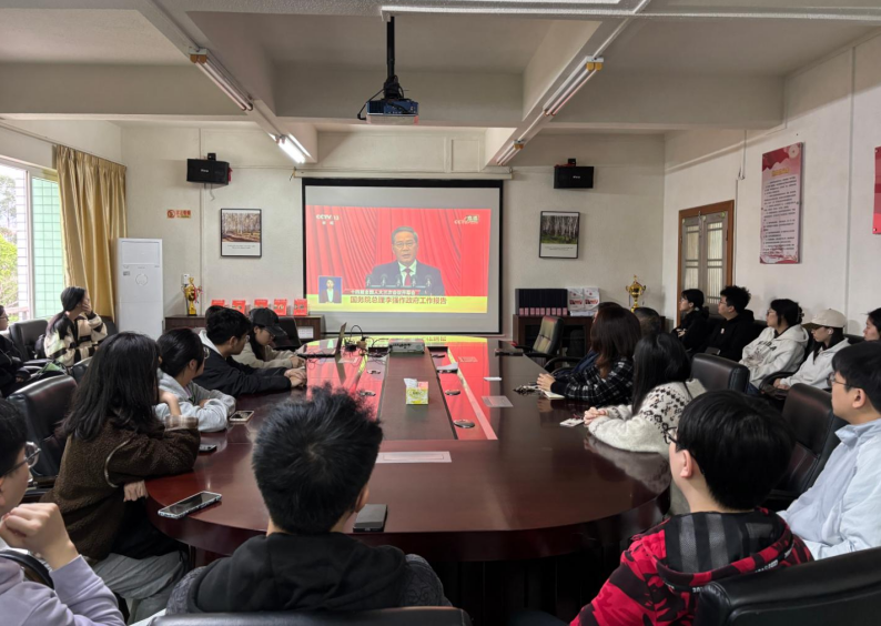 十四届全国人民代表大会第三次会议、全国政协十四届全国委员会第三次会议,分别于2025年3月5日、3月4日在北京隆重召开。为深入学习贯彻两会精神,Beat365唯一官方网站党委积极响应上级号召,组织学院师生通过电视、网络等多种方式收看开幕会直播,并围绕政府工作报告及两会热点议题展开专题学习讨论,以实际行动践行“两会精神进校园”的号召。