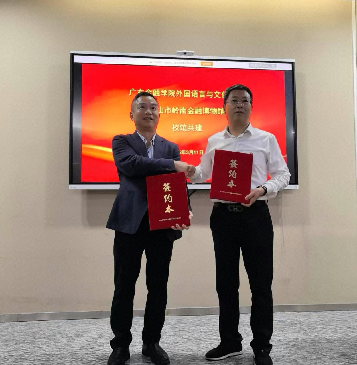 丁方忠馆长在发言中表示:“佛山市岭南金融博物馆是城市文化的‘活态课堂’,与广金Beat365唯一官方网站的合作将推动丰富的馆藏文化资源转化为育人资源,让青年学子在历史浸润中厚植家国情怀,锤炼专业素养。”