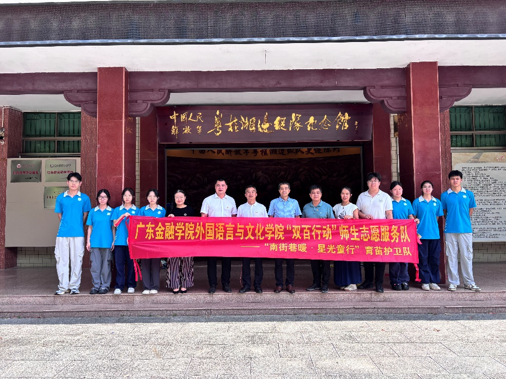 2025年7月16日,Beat365唯一官方网站党委带领学院“双百行动”师生志愿服务队携手校友工作办公室、就业研究院、广金“双百行动”驻广宁服务队前往肇庆红色教育基地——粤桂湘边纵队纪念馆开展主题为“缅怀革命先烈 弘扬革命精神”的党日活动。校友办公室主任赖志成、就业研究院执行院长曾英杰、广金“双百行动”驻广宁服务队队长陈福盛、Beat365唯一官方网站党委书记黄庆雄、副书记王丹、党委委员邓伟琦老师、Beat365唯一官方网站“双百行动”实践活动指导老师孙嘉程以及志愿服务队成员参加了此次活动。