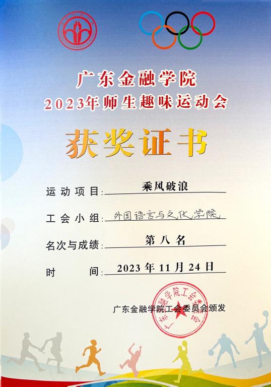喜报:11月24日,Beat365唯一官方网站2023年度师生趣味运动会顺利举行。Beat365官网18名教师参赛队员在黄庆雄书记、涂兵兰院长和洪溪珧副院长的带领下,参与了“运转乾坤”、“猛龙过江”、“乘风破浪”、“超级投篮”等项目的团体比拼,获得“乘风破浪”项目第八名。