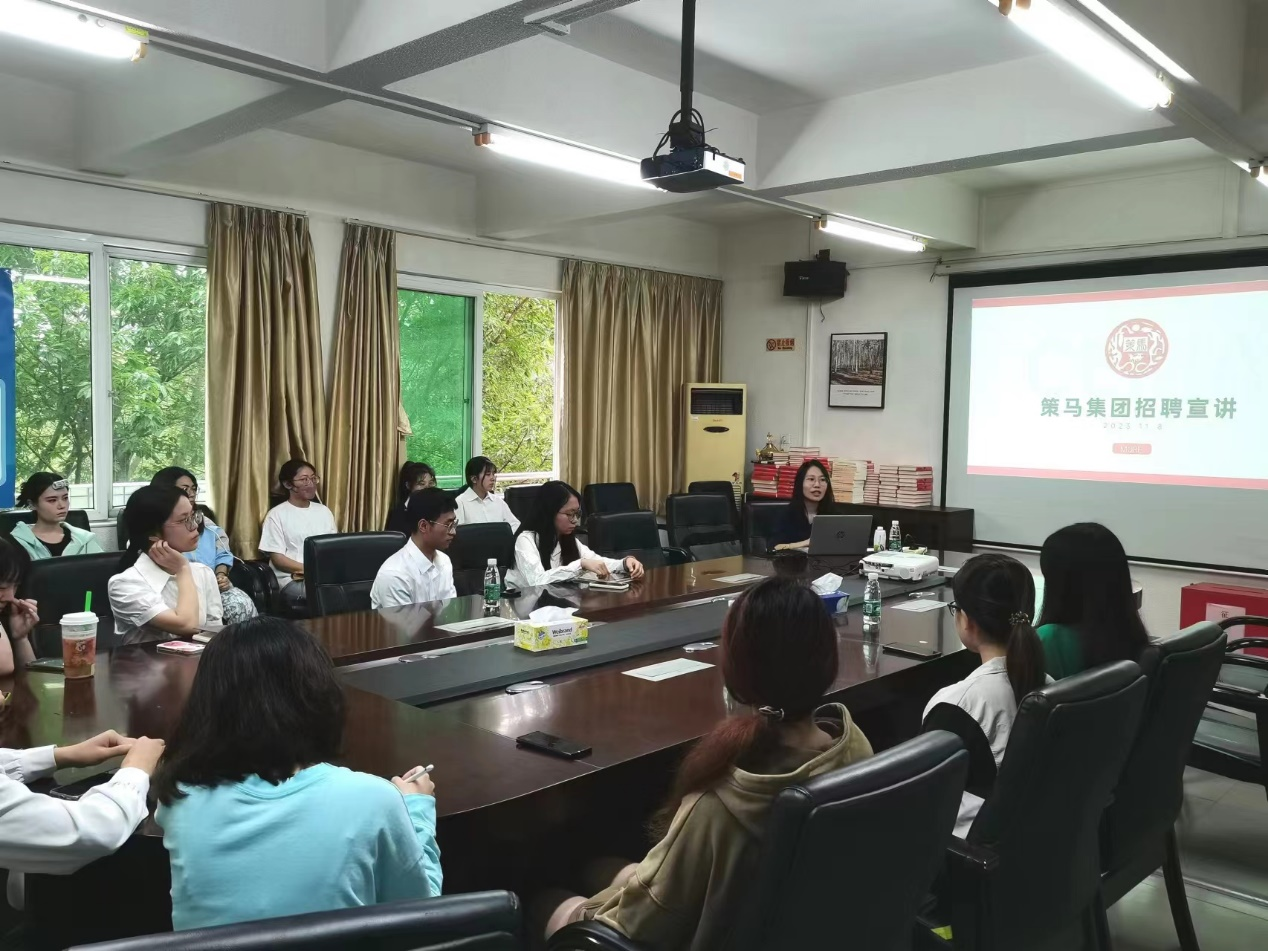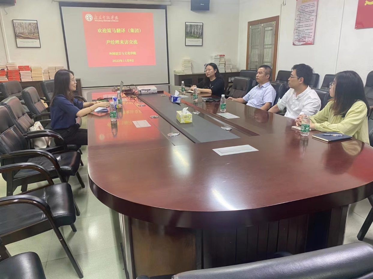 座谈会上,黄庆雄书记和陈树坤副院长分别介绍了学院的学科建设、师资力量和人才培养方向以及学院对翻译人才、师资培养的一系列举措和相关需求。黄庆雄书记表示,希望与策马集团建立多层次的校企合作,在实现人才协育的同时,双方共享共赢发展。策马集团尹利珍总监对Beat365唯一官方网站的翻译人才培养理念表示高度认可,并介绍了策马集团发展历程以及集团的翻译和培训业务。她表示,策马愿发挥自身所长,为Beat365唯一官方网站的同学们创造实习、实践机会,与学院一道共同培养优质的专业人才。随后,尹总监向Beat365官网2024届毕业生就毕业招聘过程中的有关问题进行宣讲。