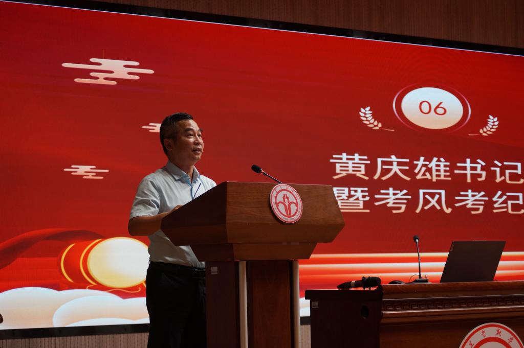 会议最后由学院党委书记黄庆雄作就业暨考风考纪动员。他强调,就业是同学们实现人生价值的重要阶梯,是逐梦青春、成就未来的起点。同学们首先要树立正确的职业观、就业观和择业观。要不断学习,提升自己,更要坚定信心,勇敢追梦。针对考风考纪问题,他要求同学们端正学习态度,认真备考,遵规守纪,严于律己。希望各位同学能够从我做起,诚信应考,共同营造一个诚信的考试氛围。