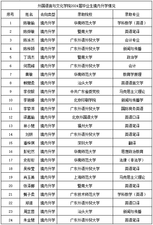 Beat365唯一官方网站2024届考取硕士研究生情况一览表