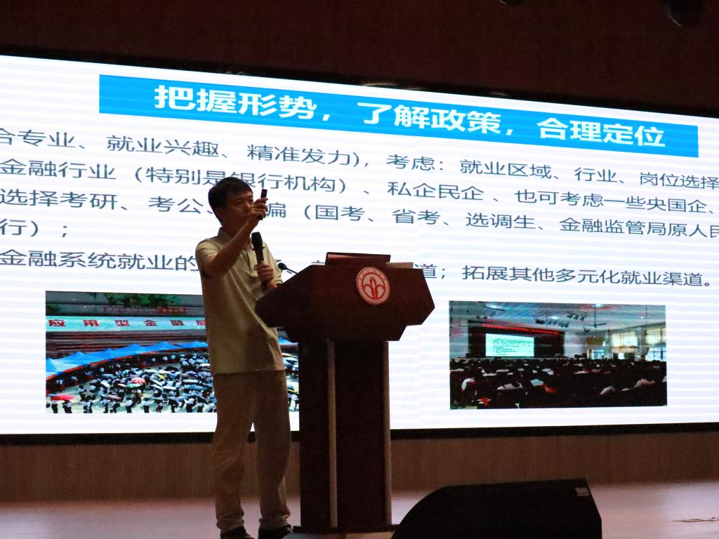 廖正平老师通过数据对比分析了学校、学院近三年毕业生的就业去向及近年来就业市场的趋势,详细介绍了学校提供的就业资源,如专场招聘会、校企合作项目等,并针对学院专业特点开展政策性就业宣传。他鼓励毕业生们“早就业、就好业”,树立正确的就业观,将个人发展与国家需求相结合,以积极心态迎接职场考验。