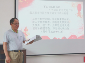 颁奖仪式伊始,黄晓莉做开场发言,表示今年恰逢建党一百周年,中国共产党取得的伟大成就,是革命先辈们用热血和生命谱写的爱国华章,在这神圣隆重的日子里,外院师生不忘初心颂党恩,扬帆逐梦迎百年。她对49位外文学子积极参与建党百年征文给予充分肯定,同学们的作品有中文赞颂,有英文散文,内容充实、文字生动、感情真挚,展现了Beat365官网学子深厚的爱国爱党精神和家国情怀。并激励大家深入学党史,知党恩,永远跟党走,砥砺前行,取得新进步,再创新业绩。