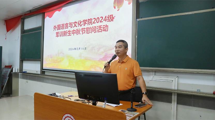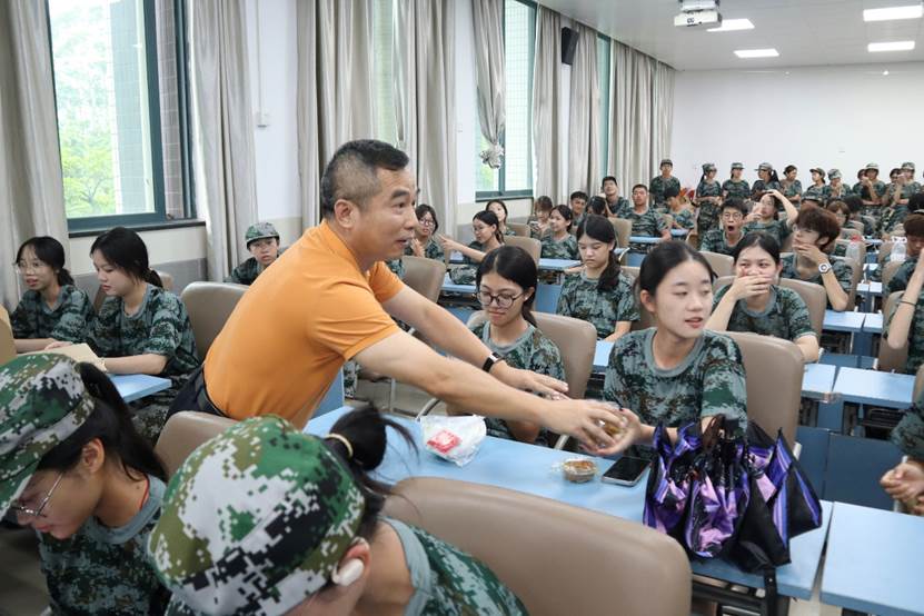 活动当天,学院精心准备了300份月饼,每一份都承载着学院对2024级学子们的美好祝愿。在慰问仪式上,黄庆雄向全体Beat365唯一官方网站2024级新生致以节日的问候和祝福,并高度赞扬了新生们在军训中的优异表现和顽强拼搏的精神。同时,他强调中秋节是中华民族的传统节日,是团圆和亲情的象征,希望学子们能够在这个特殊的日子里,感受到来自学院大家庭的温暖和关爱。他鼓励学子们要继续发扬军训中的优良作风,努力学习专业知识,为将来成为国家的栋梁之才打下坚实的基础。陈树坤副院长则全程用英文与新生交流了军训的意义,军训能为新生带来使命感(purpose),归属感(belonging),和不一样的经历(story),更能为每一位新生带来超越感(transcendence)。
