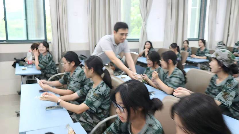 随后,慰问活动正式开始。学院领导和老师亲自将月饼送到每一位2024级学子们手中。学子们接过月饼的那一刻,脸上洋溢着幸福的笑容。他们纷纷表示将不负学院领导的期望和嘱托,以更加饱满的热情和更加坚定的信念投入到接下来的军训和学习中去。